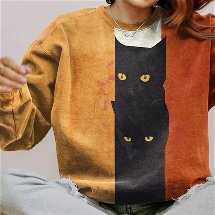 Abstract Black Cat Painting Art Crew Neck Sweatshirt