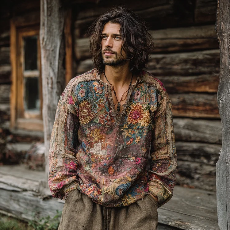 Bohemia Floral Embroidered Patchwork Art Comfy Long Sleeve Shirt