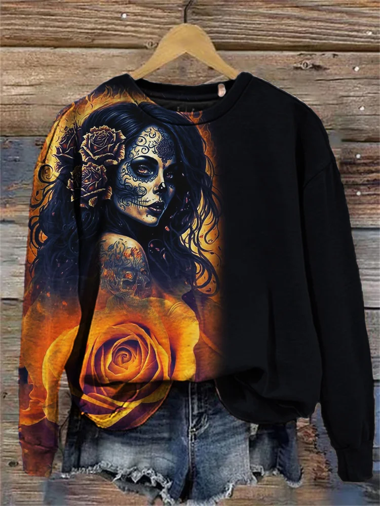Day of the Dead Sugar Skull Art Contrast Color Sweatshirt