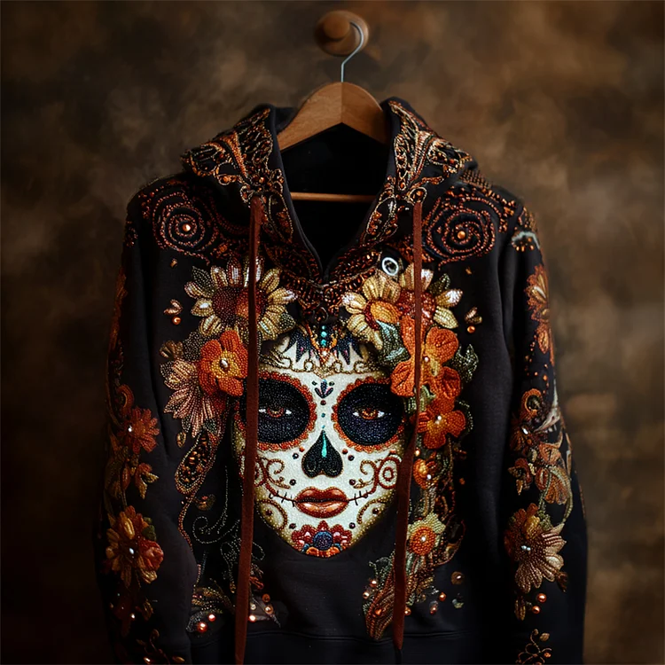 Day Of The Dead Sugar Skull Woman Floral Glitter Hoodie