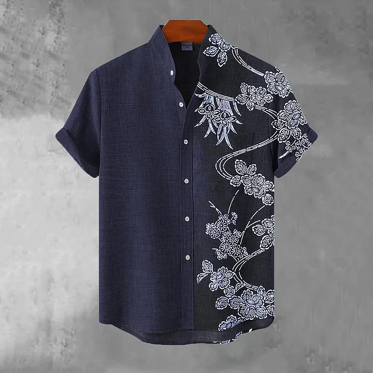 Japanese Art Print Flowers Casual Cotton Shirt