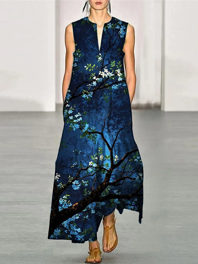 Japanese Floral Patchwork Women's V-neck Vest Maxi Dress