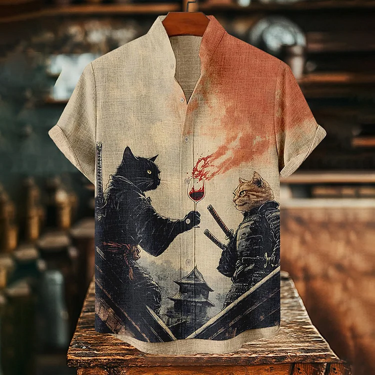 Men's Before The Black Cat Decisive Battle Art Print Short Sleeve Shirt