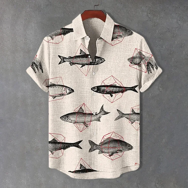 Men's Fish Cube Geometric Art Print Short Sleeve Shirt