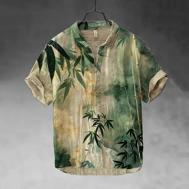 Men's Floral Bird Butterfly Art Print Short Sleeve Shirt