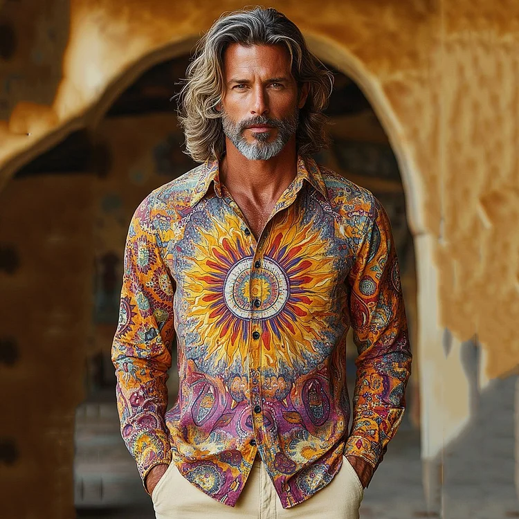 Men's Hippie Sunflower Print Retro Tie-dye Shirt