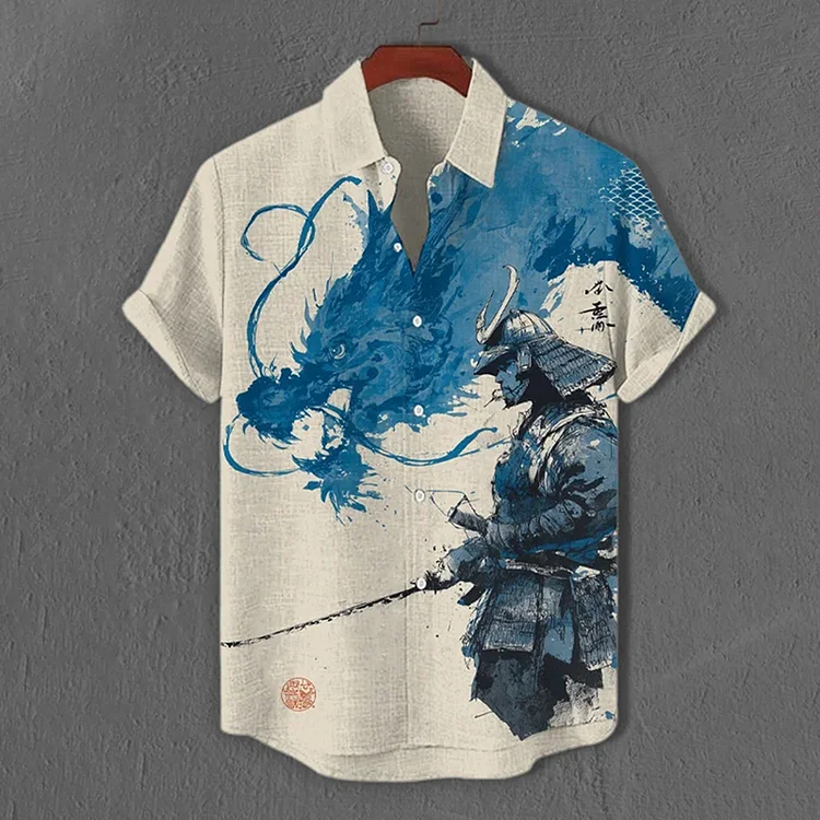 Men's Masked Samurai Dragon Art Print Short Sleeve Shirt