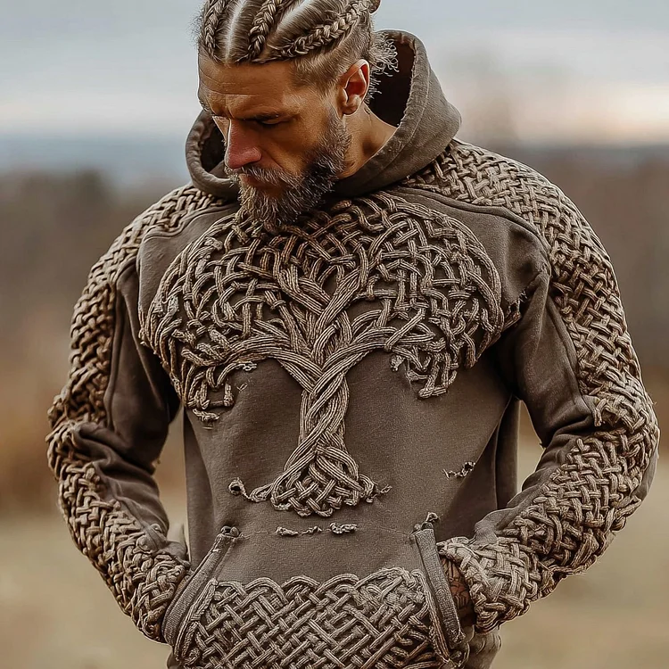 Men's Viking Celtic Knot Tree Of Life Embroidery Comfortable Warm Hoodie