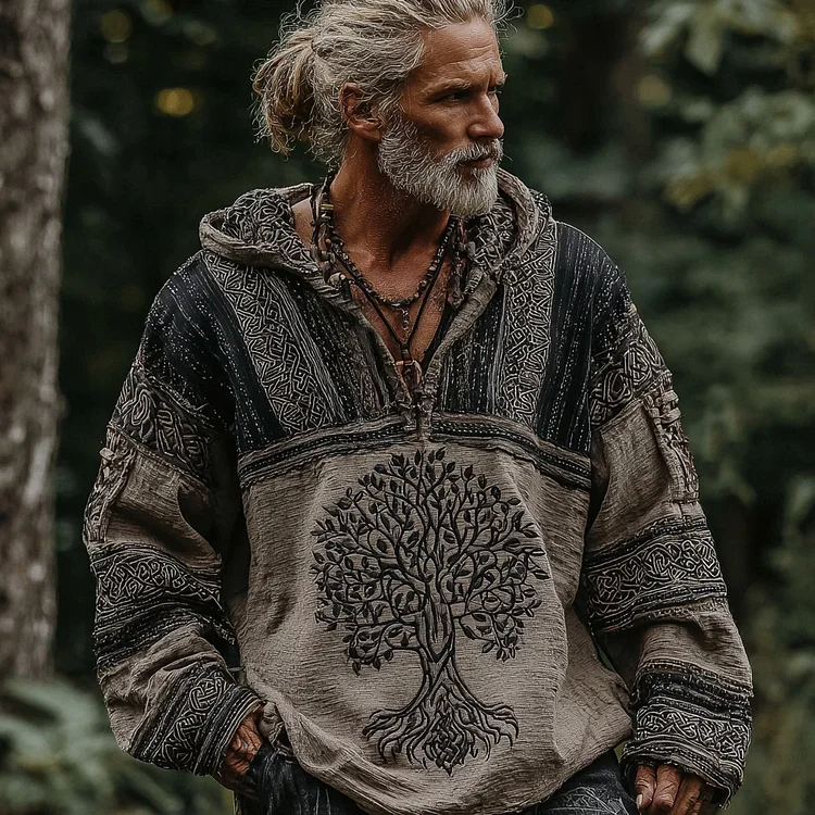 Men's Viking Nordic Life Of Tree Knot And Color Block Bohemian Hoodie