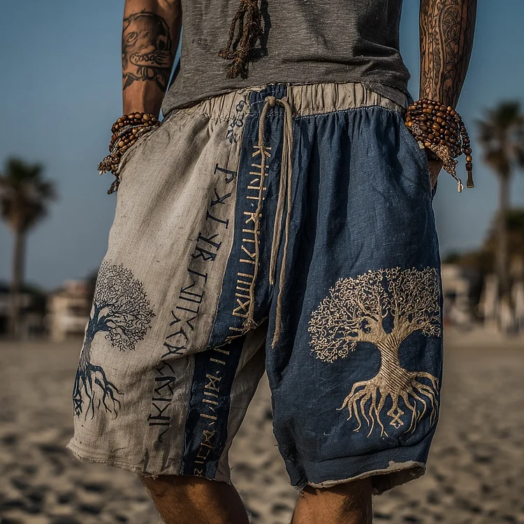 Men's Viking Retro Celtic Tree Of Life Golden Knot Casual Shorts