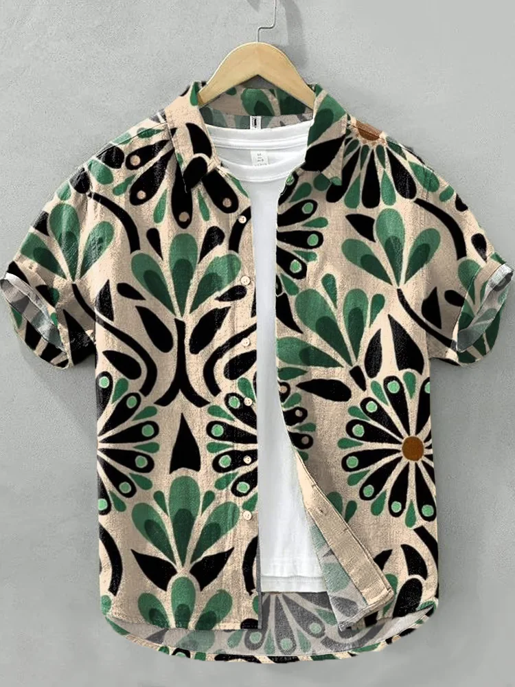 Men's Vintage Boho Inspired Print Linen Blend Shirt