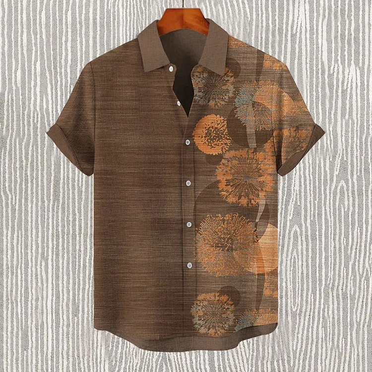 Men's Vintage Dandelion Art Print Short Sleeve Casual Shirt