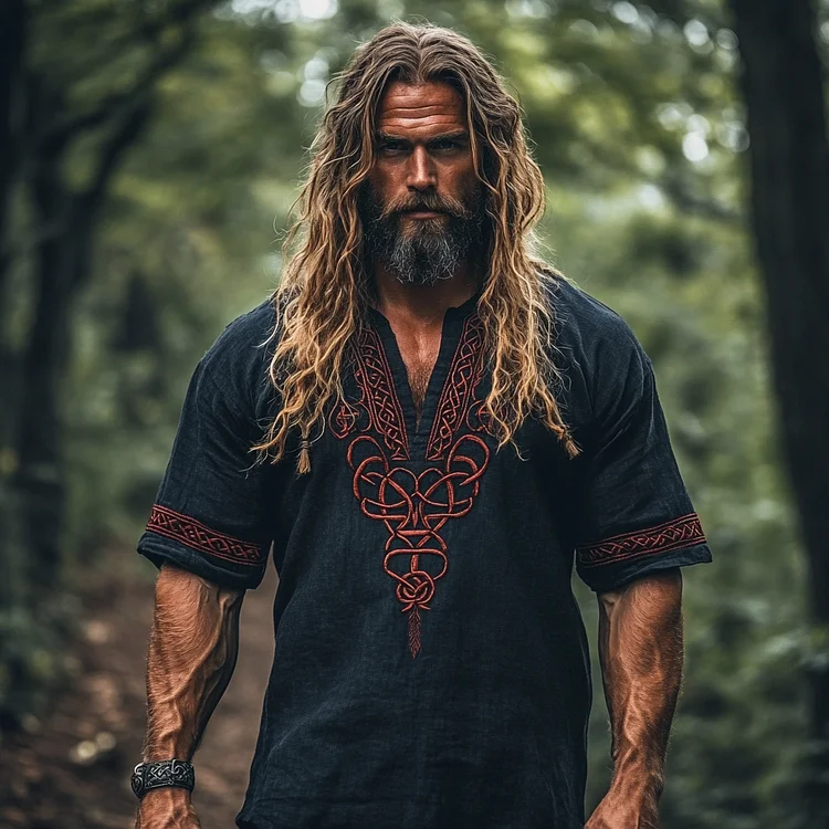 Men's Vintage Viking Celtic Knot Art Linen Blend T-shirt