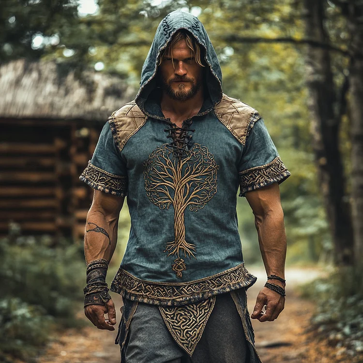 Men's Vintage Viking Tree Of Life Hooded T-shirt