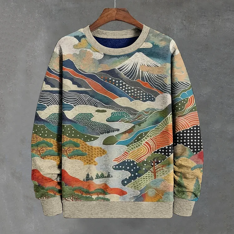 Men's Yayoi Kusama Mount Fuji Japanese Mountain Landscape Art Print Casual Sweatshirt