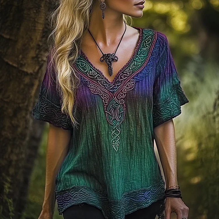 Vintage Viking Celtic Knot Gradient Art Linen T Shirt