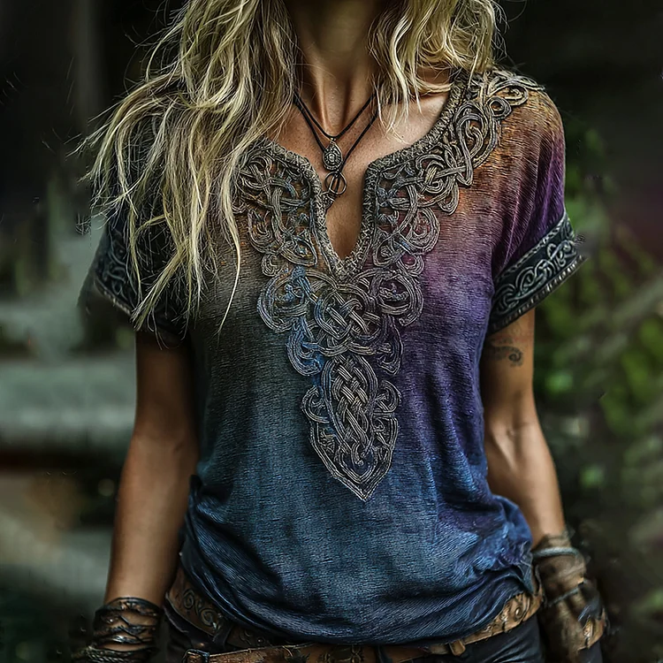 Vintage Viking Gradient Tribal Knot Art T-shirt