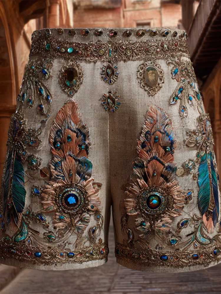 Western-style Three-dimensional Feather Gem Egyptian Vintage Shorts