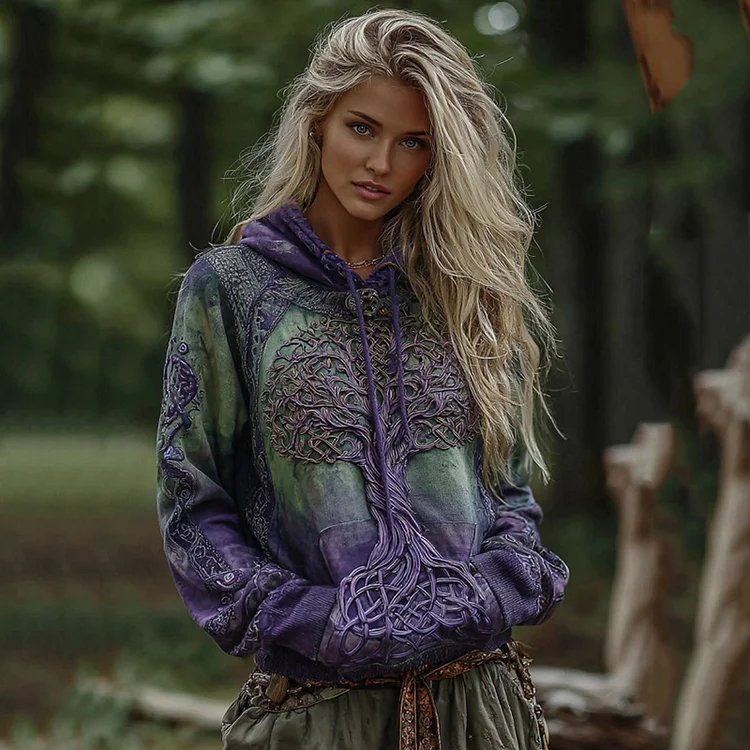 Women's Classic Viking Tree Of Life With Celtic Knot Art Gradient Comfort Hoodie