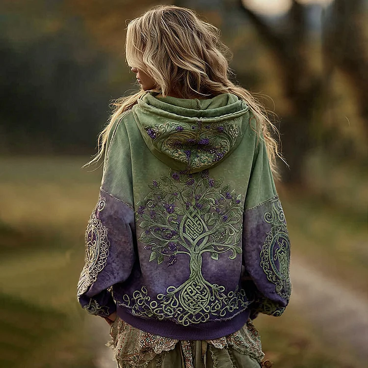 Women's Classic Viking Tree Of Life With Celtic Knot Art Gradient Comfort Hoodie