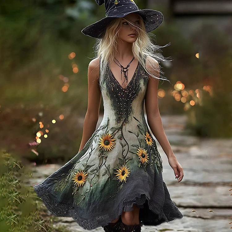 Women's Halloween Gradient Horror Daisy Witch Vest Midi Dress