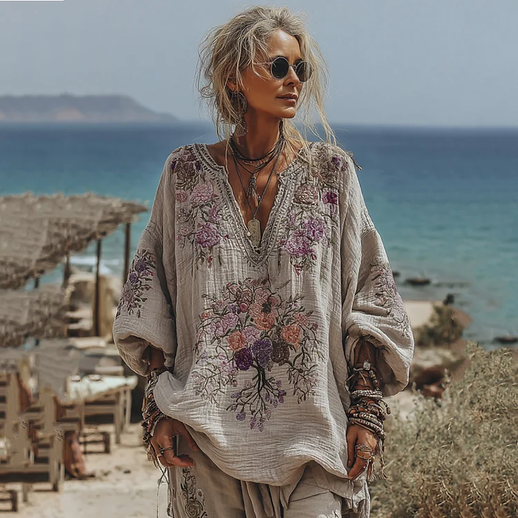 Women's Tree Of Life Floral Art V Neck Comfy Shirt