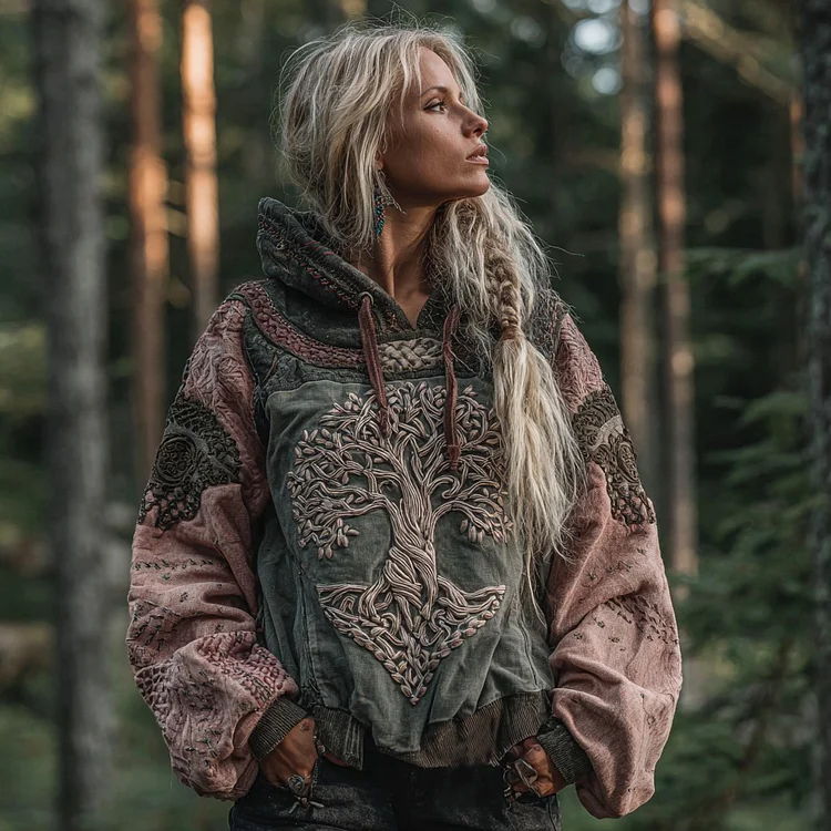 Women's Tribal Magic Tree Of Life Art Patchwork Comfort Hoodie