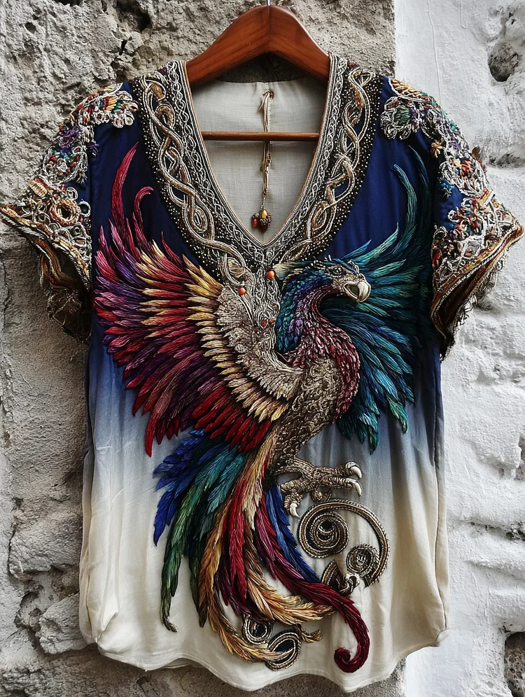 Women's Viking Celtic Knot Phoenix Totem Gradient Linen T-shirt