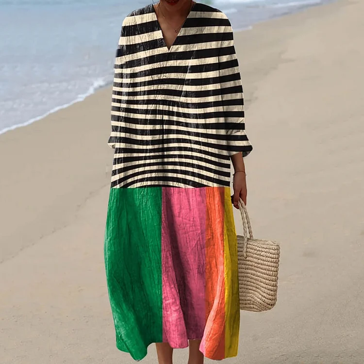Women's Vintage Geometric Line Art Print Cotton Dress