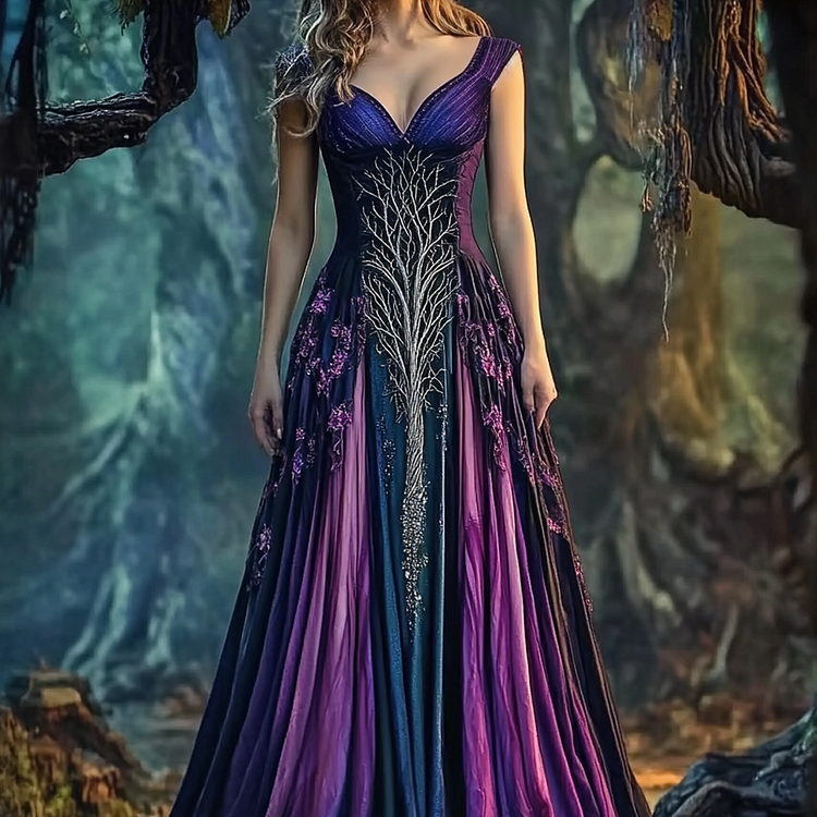 Women's Vintage Viking Tree Of Life Ombre Sleeveless Dress