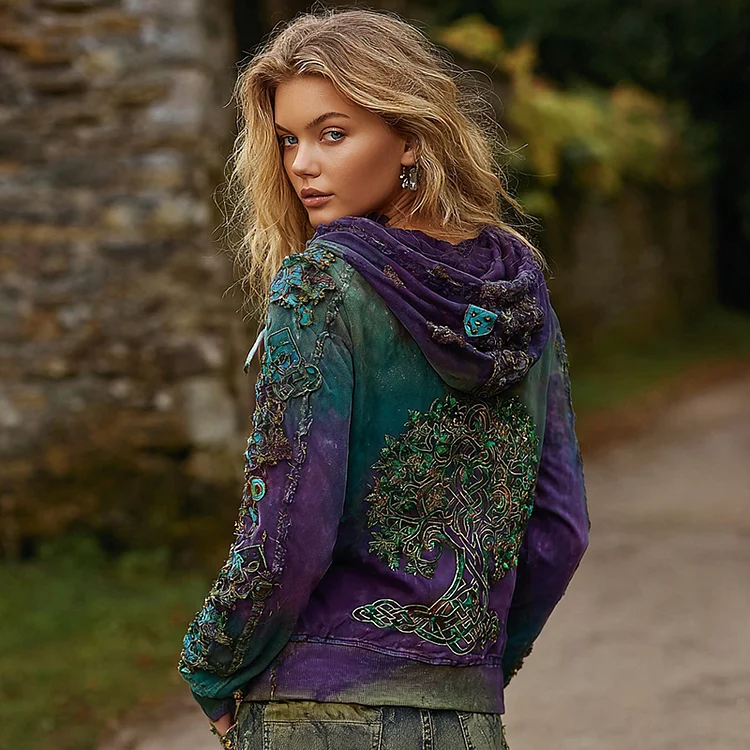Women's Vintage Viking Tree Of Life Washed Hoodie